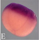 bmp15 (bone morphogenetic protein 15) gene expression in Xenopus laevis embryo, assayed via in situ hybridization, NF stage 3, horizontal view, animal up. This image is extracted from figure published in: Di Pasquale E and Brivanlou AH (2009), Image published in: Di Pasquale E and Brivanlou AH (2009) Copyright © 2009. Image reproduced with permission of the Publisher and the copyright holder. This is an Open Access article distributed under the terms of the Creative Commons Attribution License.