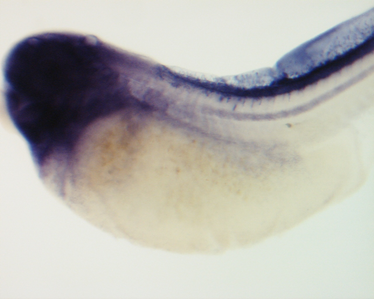 hif1an (hypoxia-inducible factor 1, alpha subunit inhibitor) gene expression in Xenopus laevis embryo, assayed via in situ hybridization, NF stage 39, lateral view, anterior left, dorsal up.