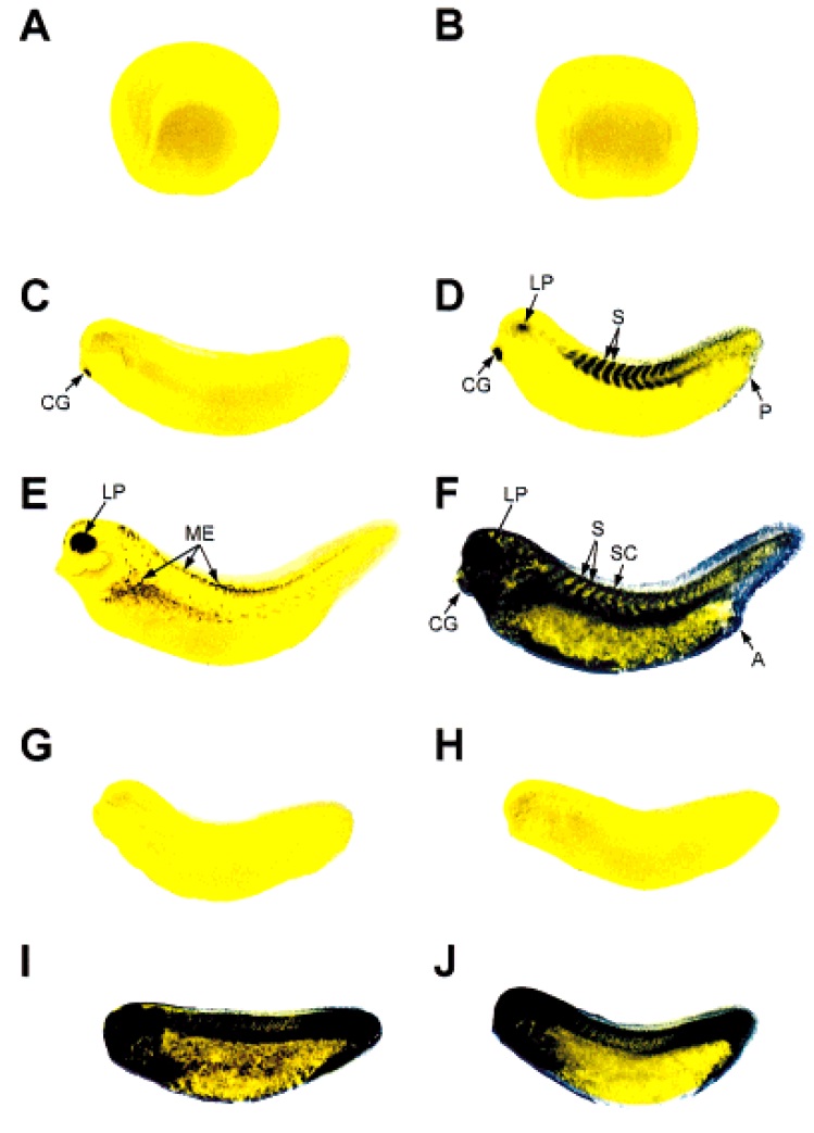 Xenopus development. Whole-mount in situ hybridization with DIGlabeled