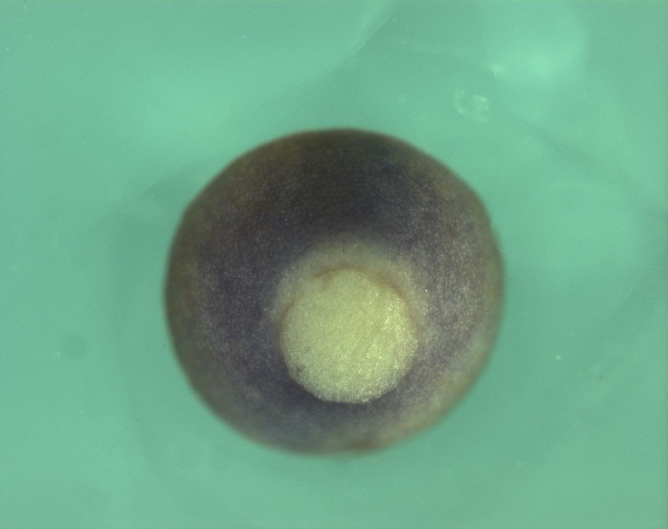fam220a (family with sequence similarity 220 member A) gene expression in Xenopus laevis embryo, assayed via in situ hybridization, NF stage 11, blastoporal view, dorsal up.
