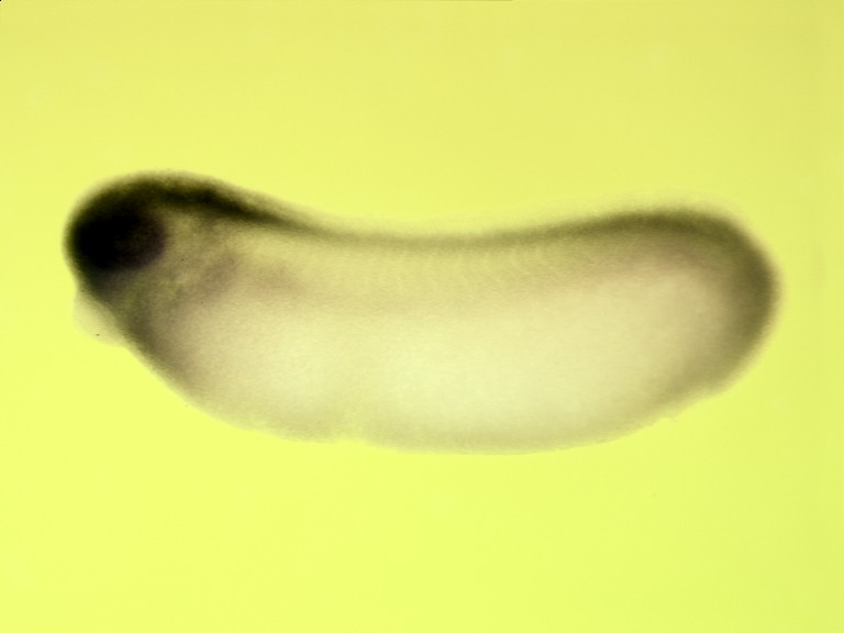 nono gene expression in Xenopus laevis, NF stage 29&30 embryo, in situ hybridization, lateral view, anterior left. Image copyrighted by Pollet, Nicolas