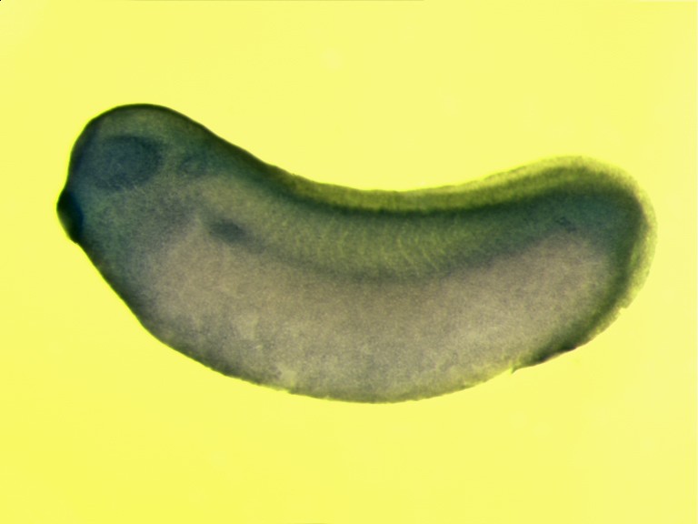 sec23b (SEC23 homolog B, COPII coat complex component) gene expression in Xenopus laevis, NF stage 29 & 30 embryo, in situ hybridization, lateral view, anterior left.
