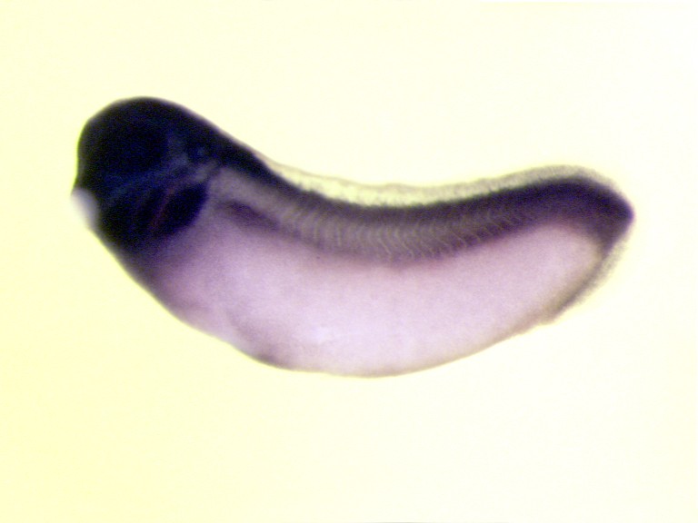 g3bp1 (GTPase activating protein (SH3 domain) binding protein 1) expressed in Xenopus laevis embryo via in situ hybridization, NF stage 28, lateral view, anterior left.