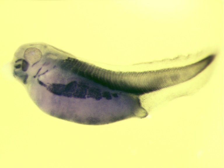 myl11 (myosin light chain 11) gene expression in Xenopus laevis embryo, NF stage, lateral view, anterior left, dorsal up. Copyright © CNRS UMR 8080, Nicolas Pollet Image published in: AXELDB Database, AxelDB (Image Pages)