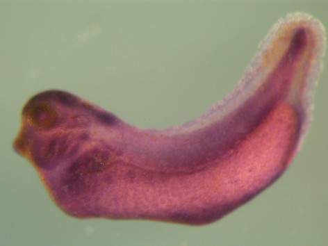 ywhae (tyrosine 3-monooxygenase/tryptophan 5-monooxygenase activation protein, epsilon polypeptide) gene expression in Xenopus tropicalis embryos, NF stage 33 & 34, as assayed by in situ hybridization, lateral view, anterior left, dorsal up.