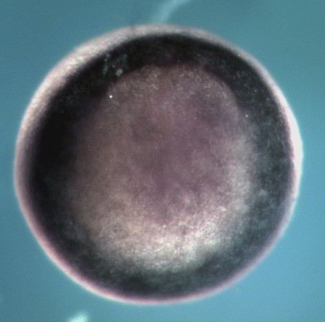 gene expression in Xenopus tropicalis embryo via in situ hybridization, NF stage 10.5, vegetal view.