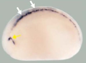 nefm (neurofilament medium chain) gene expression in Xenopus laevis embryos, NF stage 23, as assayed by in situ hybridization. Lateral view: dorsal up, anterior left. This image is extracted from figure published in: Green YS and Vetter ML (2011), Image published in: Green YS and Vetter ML (2011) Copyright ©2011 Green and Vetter; licensee BioMed Central Ltd. Creative Commons Attribution license