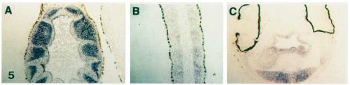 are also detected in the somites of a stage 28 embryo (B) and in