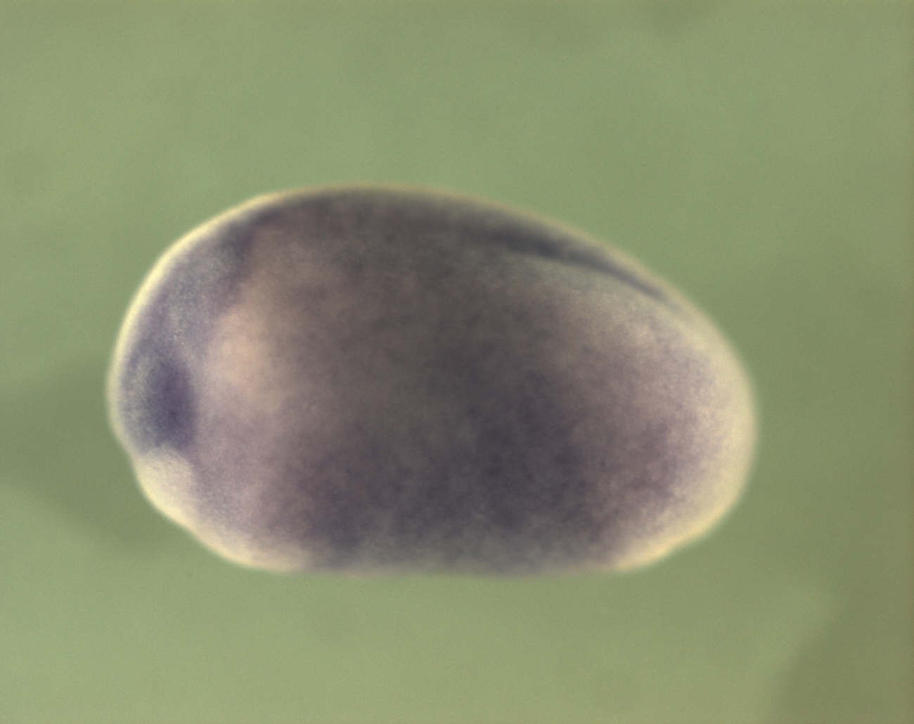 tcf4 (transcription factor 4 ) gene expression in Xenopus laevis embryo via in situ hybridization, NF stage 20, lateral view, anterior left, dorsal up. Image copyrighted by: Naoto Uneno, XDB3