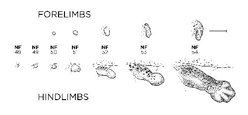 Definition: "Nieuwkoop and Faber stage 53, corresponding to a tadpole of age about 24 days at 22-24 Celsius and having the following external morphological criteria: Fore- and hindlimbs in paddle stage. Hindlimb whithout foot somewhat longer than broad; 4th and 5th toe indicated. Length: 50 - 60 mm."