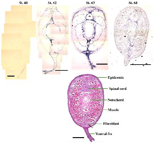 Novel structural elements identified during tail resorption in Xenopus laevis metamorphosis: lessons from tailed frogs. , Elinson RP , Remo B, Brown DD ., Dev Biol. November 15, 1999; 215 (2): 243-52.