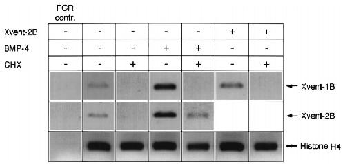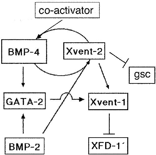 Cooperative interaction of Xvent-2 and GATA-2 in the activation of the ventral homeobox gene Xvent-1B. , Friedle H, Knöchel W ., J Biol Chem. June 28, 2002; 277 (26): 23872-81.