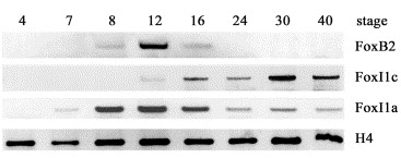 The Fox gene family in Xenopus laevis: FoxI2, FoxM1 and FoxP1 in early development. , Pohl BS, Rössner A, Knöchel W ., Int J Dev Biol. January 1, 2005; 49 (1): 53-8.
