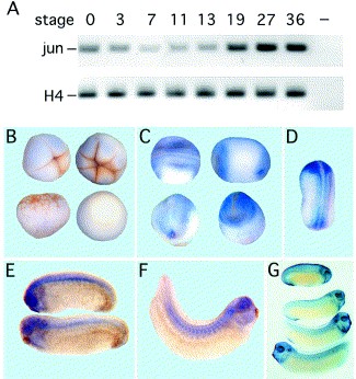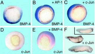 c- Jun ( AP-1) activates BMP-4 transcription in Xenopus embryos. , Knöchel S, Schuler-Metz A, Knöchel W ., Mech Dev. November 1, 2000; 98 (1-2): 29-36.
