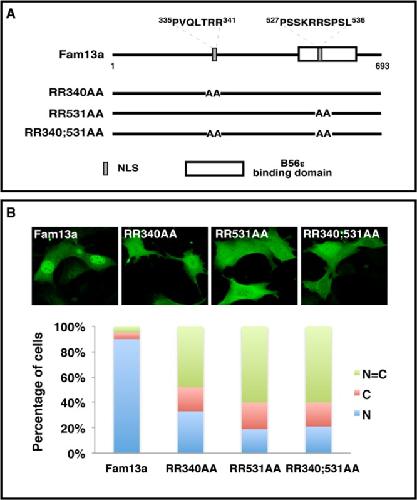 Regulation of nuclear-cytoplasmic shuttling and function of Family with sequence similarity 13, member A ( Fam13a), by B56-containing PP2As and Akt. , Jin Z, Chung JW, Mei W, Strack S, He C, Lau GW, Yang J ., Mol Biol Cell. March 15, 2015; 26 (6): 1160-73.