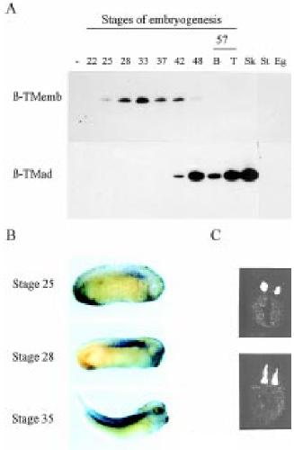 Differential expression of two skeletal muscle beta-tropomyosin mRNAs during Xenopus laevis development. , Gaillard C, Lerivray H, Thézé N , Cooper B, Lepetit D, Mohun T , Thiébaud P ., Int J Dev Biol. March 1, 1999; 43 (2): 175-8.