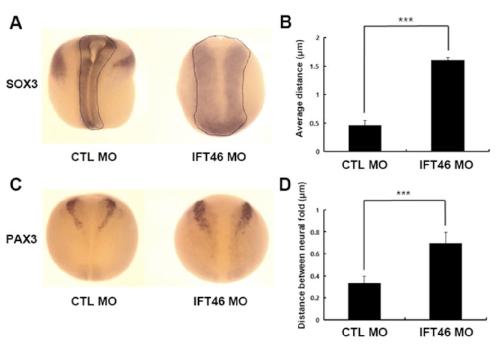 IFT46 plays crucial roles in craniofacial and cilia development., Park I, Lee HK, Kim C, Ismail T, Kim YK, Park JW, Kwon OS, Kang BS, Lee DS, Park TJ, Park MJ, Choi SC, Lee HS., Biochem Biophys Res Commun. August 26, 2016; 477 (3): 419-25. |