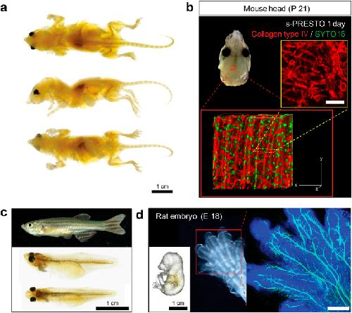 ACT-PRESTO: Rapid and consistent tissue clearing and labeling method for 3-dimensional (3D) imaging., Lee E, Choi J, Jo Y, Kim JY, Jang YJ, Lee HM, Kim SY, Lee HJ, Cho K, Jung N, Hur EM, Jeong SJ, Moon C, Choe Y, Rhyu IJ, Kim H, Sun W., Sci Rep. January 11, 2016; 6 18631. |