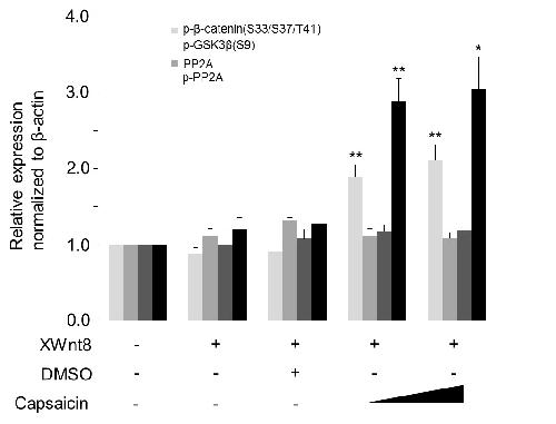 Capsaicin inhibits the Wnt/β-catenin signaling pathway by down-regulating PP2A., Park DS, Yoon GH, Lee HS, Choi SC., Biochem Biophys Res Commun. September 9, 2016; 478 (1): 455-461. |