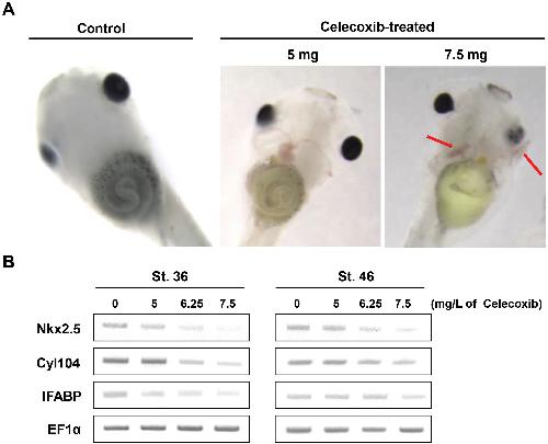 Evaluation of the toxic effects of celecoxib on Xenopus embryo development., Yoon YH, Kim JY, Bae YC, Nam SW, Cho HJ, Lee S, Chung HY, Lee HS, Park MJ., Biochem Biophys Res Commun. June 22, 2018; 501 (2): 329-335. |