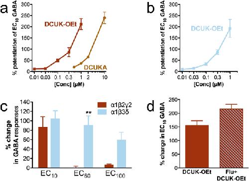A pharmacological characterization of GABA, THIP and DS2 at binary α4β3 and β3δ receptors: GABA activates β3δ receptors via the β3(+)δ(-) interface., Lee HJ, Absalom NL, Hanrahan JR, van Nieuwenhuijzen P, Ahring PK, Chebib M., Brain Res. August 1, 2016; 1644 222-30. |