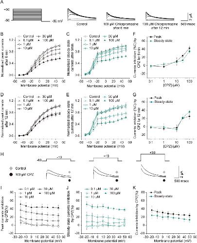 Chlorpromazine directly inhibits Kv1.3 channels by facilitating the inactivation of channels., Park SI, Hwang S, Lee Y, Lee HY, Kim S, Hong J, Jo SH, Choi SY., Mol Brain. May 8, 2025; 18 (1): 41. |