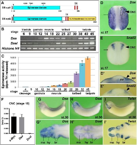 Gene expression of the two developmentally regulated dermatan sulfate epimerases in the Xenopus embryo. , Gouignard N , Schön T, Holmgren C, Strate I, Taşöz E, Wetzel F, Maccarana M, Pera EM ., PLoS One. January 18, 2018; 13 (1): e0191751.