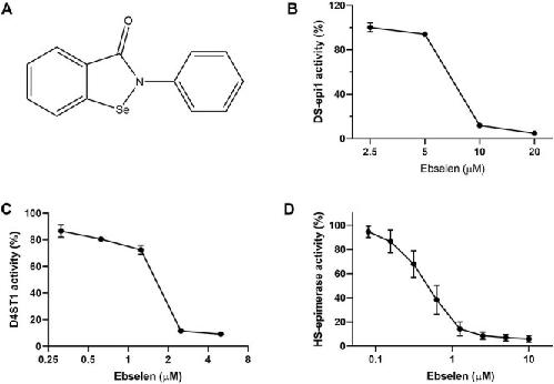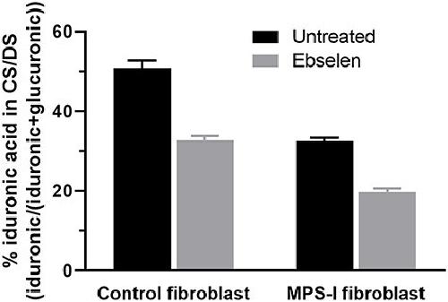 Inhibition of iduronic acid biosynthesis by ebselen reduces glycosaminoglycan accumulation in mucopolysaccharidosis type I fibroblasts. , Maccarana M, Tykesson E, Pera EM , Gouignard N , Fang J, Malmström A, Ghiselli G, Li JP., Glycobiology. November 18, 2021; 31 (10): 1319-1329.