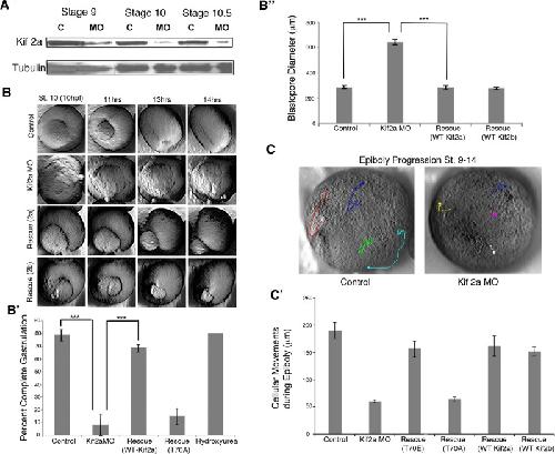 Kif2a depletion generates chromosome segregation and pole coalescence defects in animal caps and inhibits gastrulation of the Xenopus embryo. , Eagleson G , Pfister K, Knowlton AL, Skoglund P , Keller R , Stukenberg PT ., Mol Biol Cell. March 1, 2015; 26 (5): 924-37.