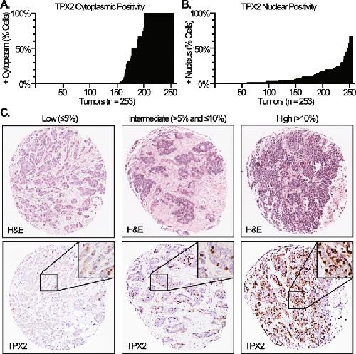 High nuclear TPX2 expression correlates with TP53 mutation and poor clinical behavior in a large breast cancer cohort, but is not an independent predictor of chromosomal instability. , Matson DR, Denu RA, Zasadil LM, Burkard ME, Weaver BA, Flynn C, Stukenberg PT ., BMC Cancer. February 23, 2021; 21 (1): 186.