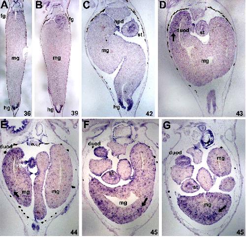 Evolutionary relationships between the amphibian, avian, and mammalian stomachs. , Smith DM, Grasty RC, Theodosiou NA, Tabin CJ, Nascone-Yoder NM ., Evol Dev. January 1, 2000; 2 (6): 348-59.
