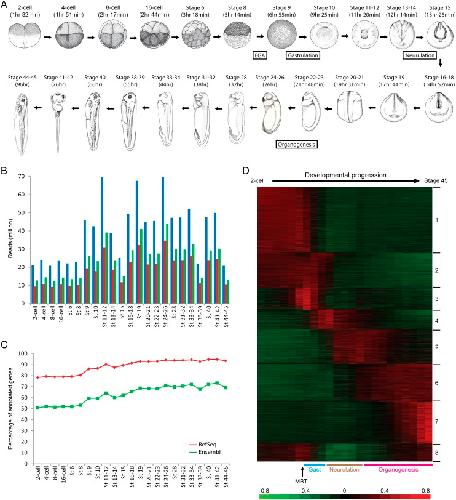 RNA sequencing reveals a diverse and dynamic repertoire of the Xenopus tropicalis transcriptome over development., Tan MH, Au KF, Yablonovitch AL, Wills AE, Chuang J, Baker JC, Wong WH, Li JB., Genome Res. January 1, 2013; 23 (1): 201-16.