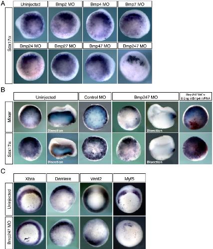 Bmp signaling is necessary and sufficient for ventrolateral endoderm specification in Xenopus., Wills A, Dickinson K, Khokha M, Baker JC., Dev Dyn. August 1, 2008; 237 (8): 2177-86.