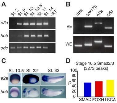 HEB and E2A function as SMAD/FOXH1 cofactors., Yoon SJ, Wills AE, Chuong E, Gupta R, Baker JC., Genes Dev. August 1, 2011; 25 (15): 1654-61.