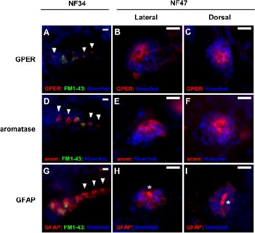 Early expression of aromatase and the membrane estrogen receptor GPER in neuromasts reveals a role for estrogens in the development of the frog lateral line system. , Hamilton CK, Navarro-Martin L, Neufeld M, Basak A, Trudeau VL ., Gen Comp Endocrinol. September 1, 2014; 205 242-50.
