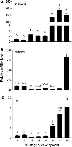 Expression profiles of reproduction- and thyroid hormone-related transcripts in the brains of chemically-induced intersex frogs. , Langlois VS , Duarte-Guterman P, Trudeau VL ., Sex Dev. January 1, 2011; 5 (1): 26-32.