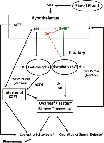 Transcript profiles and triiodothyronine regulation of sex steroid- and thyroid hormone-related genes in the gonad- mesonephros complex of Silurana tropicalis. , Duarte-Guterman P, Trudeau VL ., Mol Cell Endocrinol. January 1, 2011; 331 (1): 143-9.