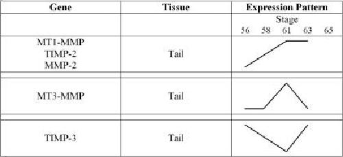 Spatial and temporal regulation of collagenases-3, -4, and stromelysin -3 implicates distinct functions in apoptosis and tissue remodeling during frog metamorphosis. , Damjanovski S , Ishizuya-Oka A , Shi YB ., Cell Res. June 1, 1999; 9 (2): 91-105.