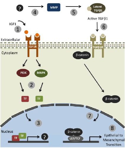 IGF-1 increases invasive potential of MCF 7 breast cancer cells and induces activation of latent TGF-β1 resulting in epithelial to mesenchymal transition. , Walsh LA, Damjanovski S ., Cell Commun Signal. May 2, 2011; 9 (1): 10.