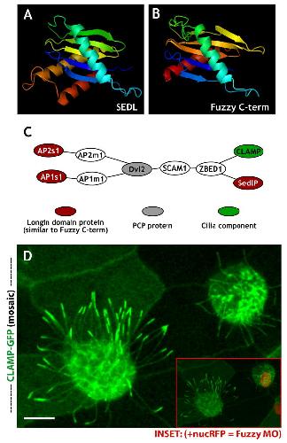 The planar cell polarity effector Fuz is essential for targeted membrane trafficking, ciliogenesis and mouse embryonic development., Gray RS, Abitua PB, Wlodarczyk BJ, Szabo-Rogers HL, Blanchard O, Lee I, Weiss GS, Liu KJ, Marcotte EM, Wallingford JB, Finnell RH., Nat Cell Biol. October 1, 2009; 11 (10): 1225-32.