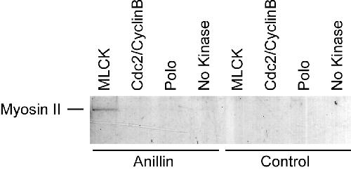 Anillin binds nonmuscle myosin II and regulates the contractile ring., Straight AF, Field CM, Mitchison TJ., Mol Biol Cell. January 1, 2005; 16 (1): 193-201.