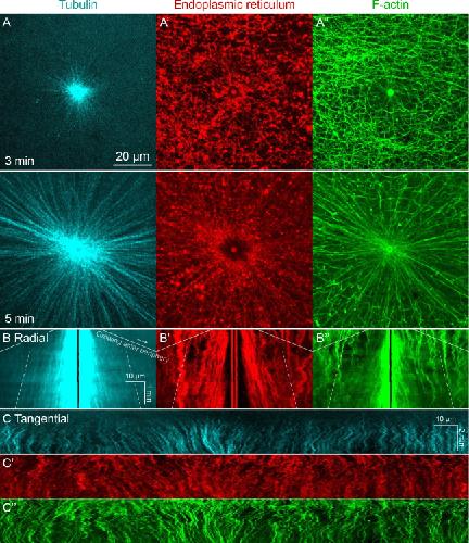 Co-movement of astral microtubules, organelles and F-actin by dynein and actomyosin forces in frog egg cytoplasm., Pelletier JF, Field CM, Fürthauer S, Sonnett M, Mitchison TJ., Elife. December 7, 2020; 9