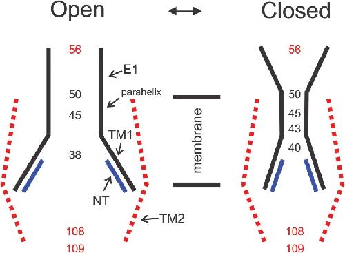Voltage-dependent gating of the Cx32*43E1 hemichannel: conformational changes at the channel entrances., Kwon T, Tang Q, Bargiello TA., J Gen Physiol. February 1, 2013; 141 (2): 243-59. |