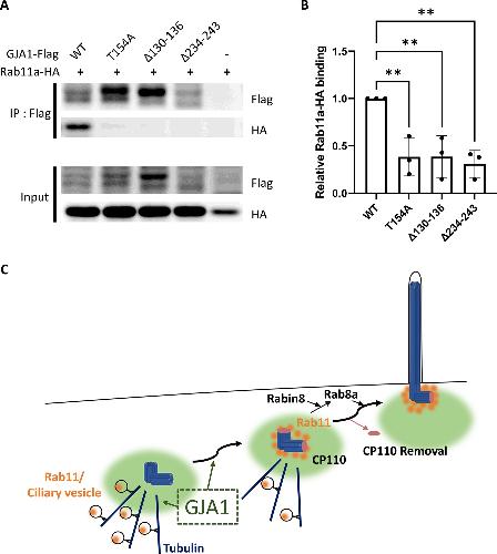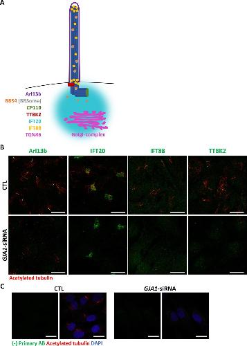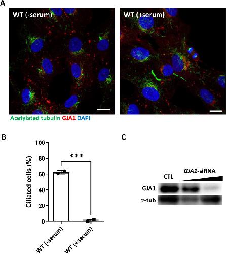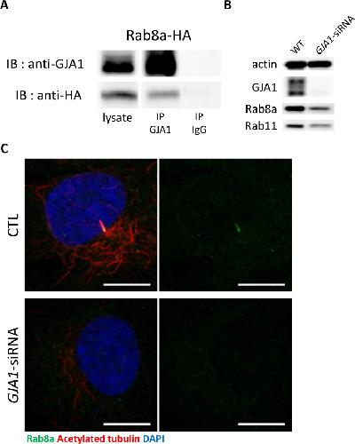 GJA1 depletion causes ciliary defects by affecting Rab11 trafficking to the ciliary base., Jang DG, Kwon KY, Kweon YC, Kim BG, Myung K, Lee HS, Young Park C, Kwon T, Park TJ., Elife. August 25, 2022; 11 |
