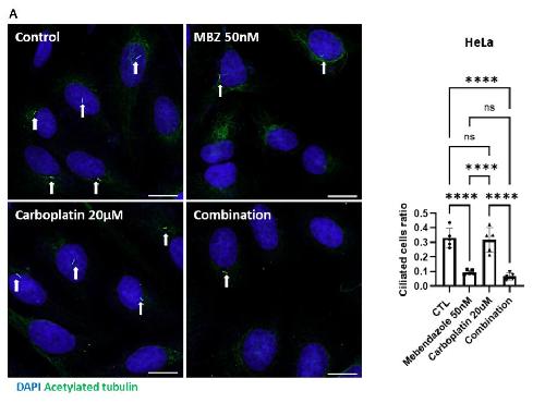 Mebendazole preferentially inhibits cilia formation and exerts anticancer activity by synergistically augmenting DNA damage., Hong J, Kwon KY, Jang DG, Kwon T, Yoon H, Park TJ., Biomed Pharmacother. May 1, 2024; 174 116434. |