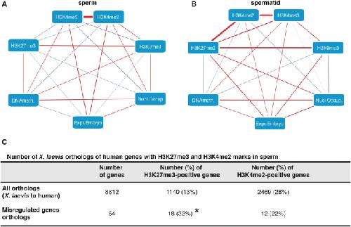 Sperm is epigenetically programmed to regulate gene transcription in embryos., Teperek M, Simeone A, Gaggioli V, Miyamoto K, Allen GE, Erkek S, Kwon T, Marcotte EM, Zegerman P, Bradshaw CR, Peters AH, Gurdon JB, Jullien J., Genome Res. August 1, 2016; 26 (8): 1034-46. |