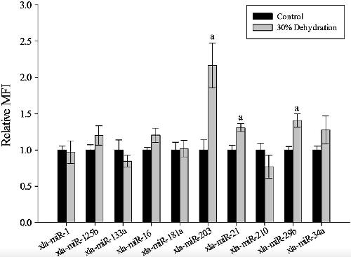 Dehydration mediated microRNA response in the African clawed frog Xenopus laevis. , Wu CW , Biggar KK, Storey KB ., Gene. October 25, 2013; 529 (2): 269-75.
