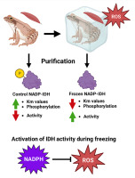 Role of NADP+-dependent isocitrate dehydrogenase from muscle tissue of Rana sylvatica in ROS defense during freeze-tolerance. , Mattice AMS, Varma A, Storey KB ., Biochimie. July 1, 2023; 210 14-21.