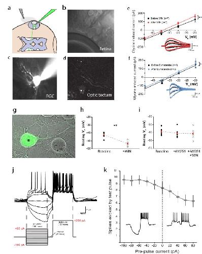 Endocannabinoid signaling enhances visual responses through modulation of intracellular chloride levels in retinal ganglion cells. , Miraucourt LS, Tsui J , Gobert D, Desjardins JF, Schohl A , Sild M, Spratt P, Castonguay A, De Koninck Y, Marsh-Armstrong N , Wiseman PW, Ruthazer ES ., Elife. August 8, 2016; 5