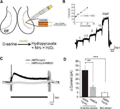 Disk-shaped amperometric enzymatic biosensor for in vivo detection of D-serine. , Polcari D, Kwan A, Van Horn MR, Danis L, Pollegioni L, Ruthazer ES , Mauzeroll J., Anal Chem. April 1, 2014; 86 (7): 3501-7.